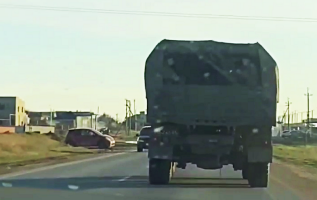 Зокрема колона вантажівок «КАМАЗ» із особовим складом армії РФ рухалася на північ від міста Євпаторія, повідомили підпільники.