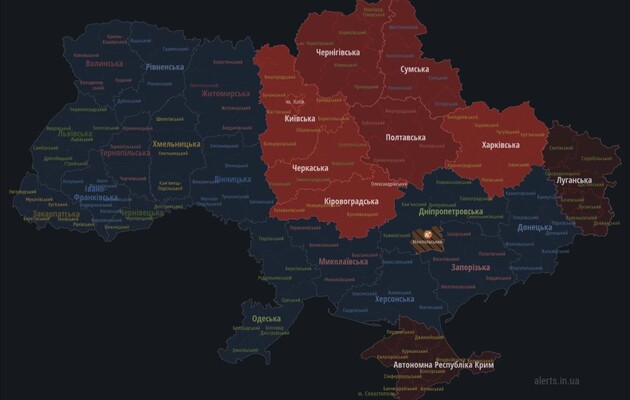 О 22:18 тривогу оголосили у Полтавській області. А приблизно через півтори години вона поширилась на Чернігівську, Сумську, Харківську, Кіровоградську, Черкаську області, а також Київ та Київську область.