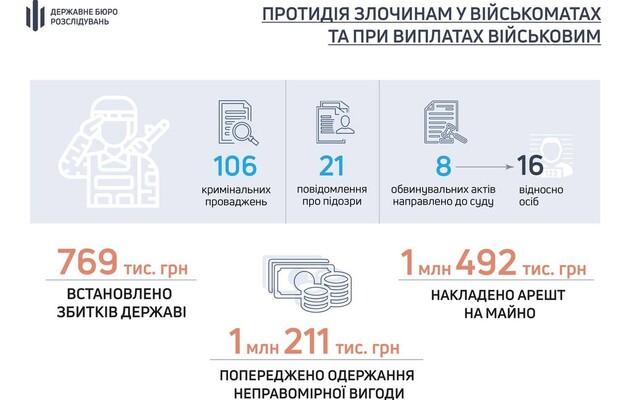 Від початку повномасштабного вторгнення РФ Державне бюро розслідувань відкрило 106 кримінальних справ стосовно зловживань під час роботи територіальних центрів комплектування та військово-лікарських комісій. Про це повідомляє пресслужба ДБР.