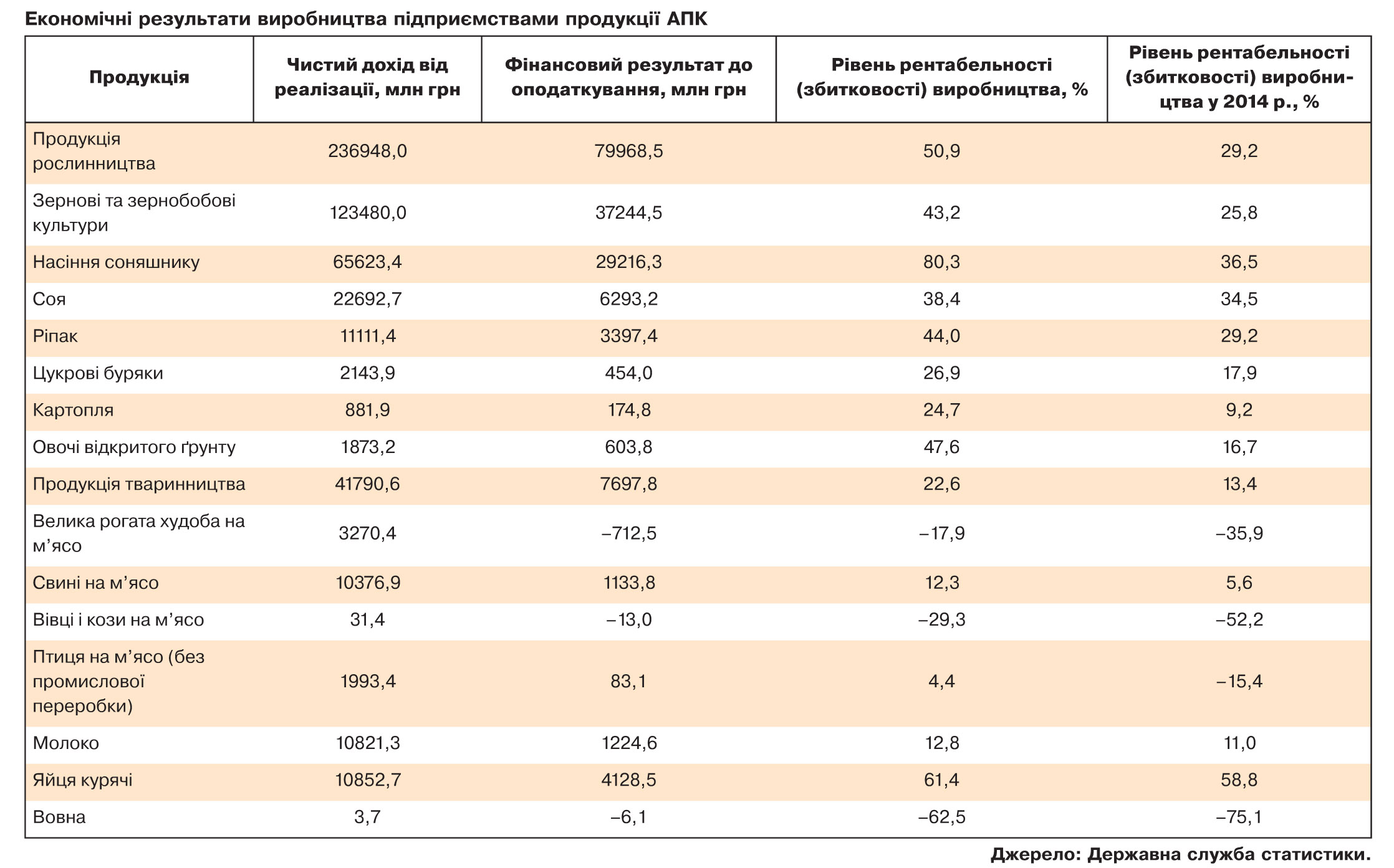 За даними Держстату, за попередніми підсумками в 2015 р. фінансовий результат до оподаткування підприємств від реалізації продукції сільського господарства й надання послуг у рослинництві та тваринництві становив 89,5 млрд грн прибутку (в 2014-му - 35,3 млрд), а рівень рентабельності сільськогосподарського виробництва в цілому - 45,7% (у 2014 р. - 26,3%). Погодьтеся, є і запас міцності, і можливості для зростання. От тільки кількість у якість ніяк не перейде.