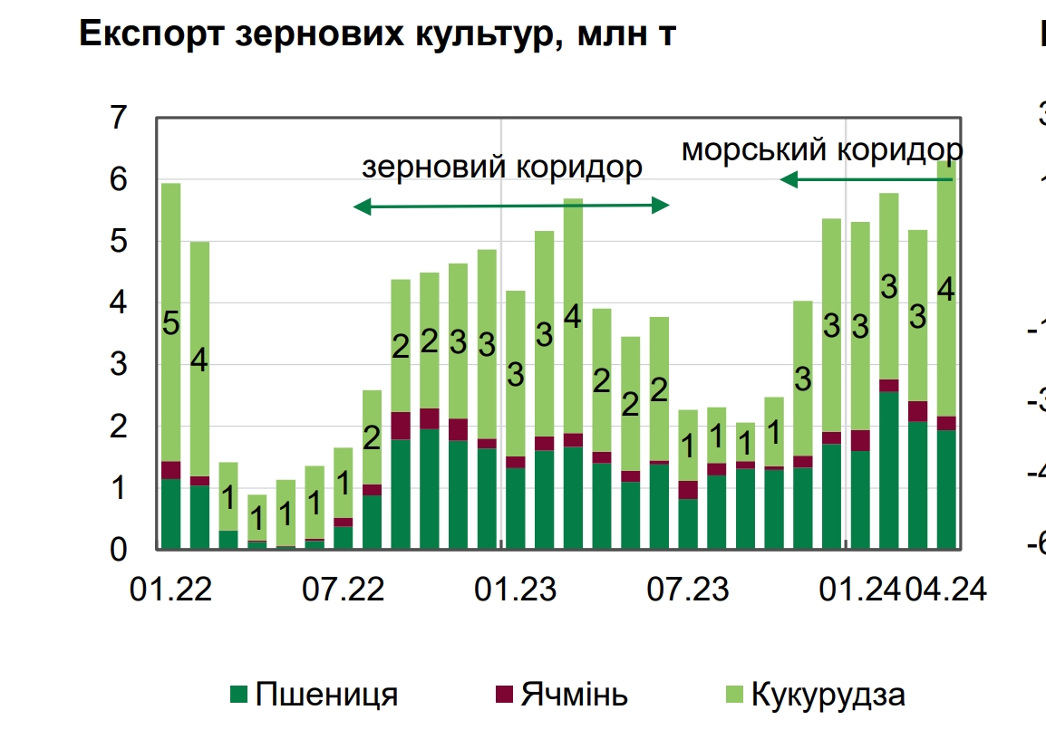 Суттєве зростання експорту української кукурудзи насамперед пов'язано з масштабними проблемами з вирощуванням цієї зернової культури в Південній Америці. Саме тому, за оцінкою експертів Національного банку, "у квітні були зафіксовані найвищі з початку повномасштабного вторгнення обсяги поставок як кукурудзи, так і зернових загалом".