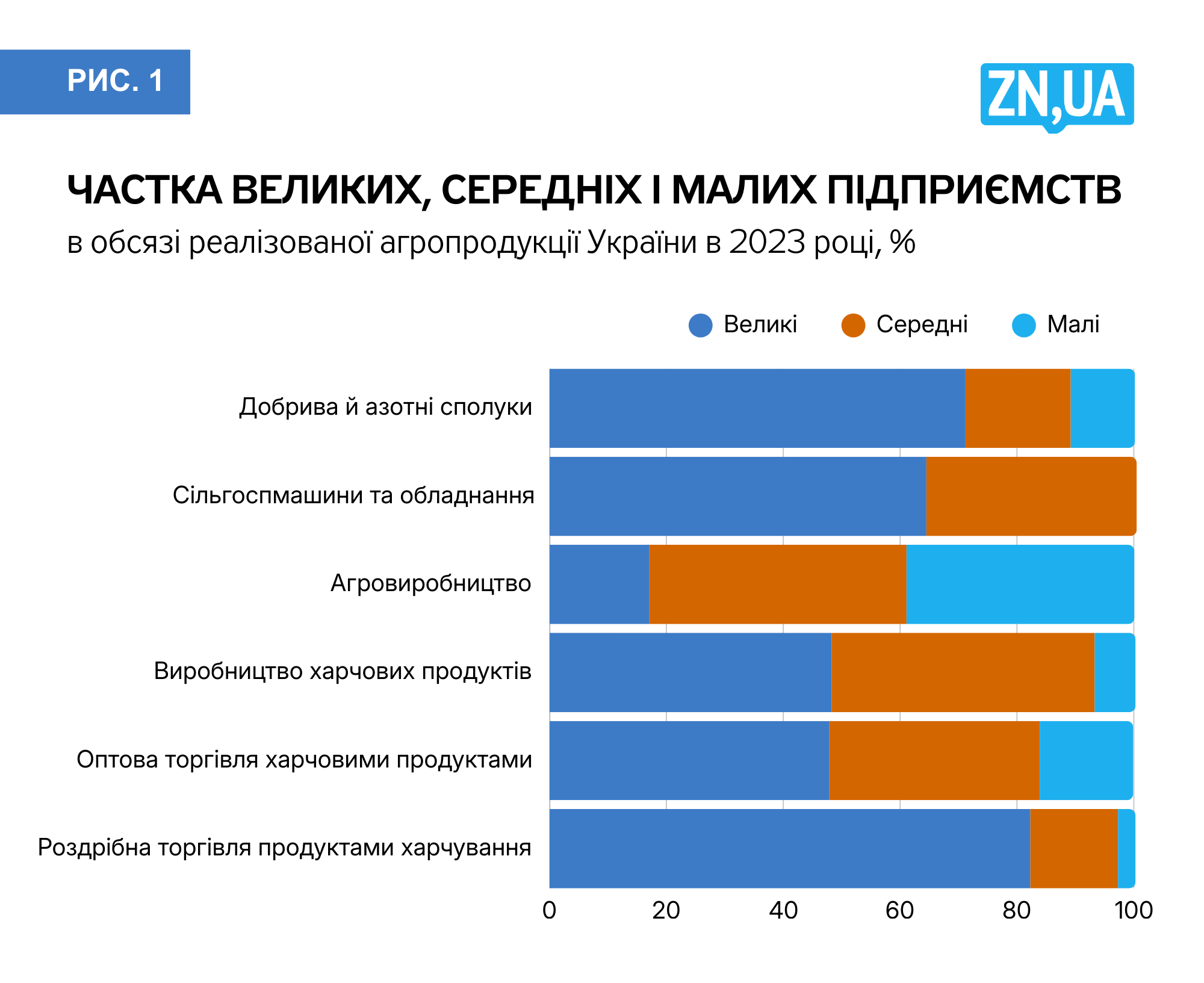 Так, подібна структура характерна для агропромислових ринків у більшості країн. Однак у розвинених країнах становище фермерів в агропродовольчих ланцюжках зміцнюється за рахунок кооперативів: у молочному секторі ЄС їхня частка становить близько 60%, у виноробстві, постачанні овочів і фруктів — 40%. Достатньо важливу роль відіграє й послідовна державна політика, спрямована на підтримку малого та середнього бізнесу, зокрема фермерів.