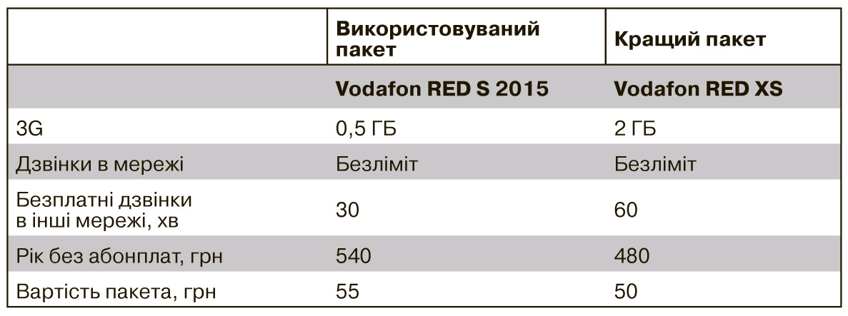 Читаємо в іншому зверненні: "Виходить, що діючим абонентам нав'язують перехід з Red S старого в Red S новий, адже перехід в Red XS їм заборонений? При цьому пакет Red XS має значно більші можливості, ніж RED S 2015 (див. табл.), але коштує дешевше.