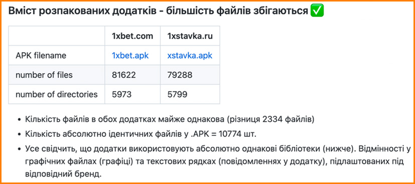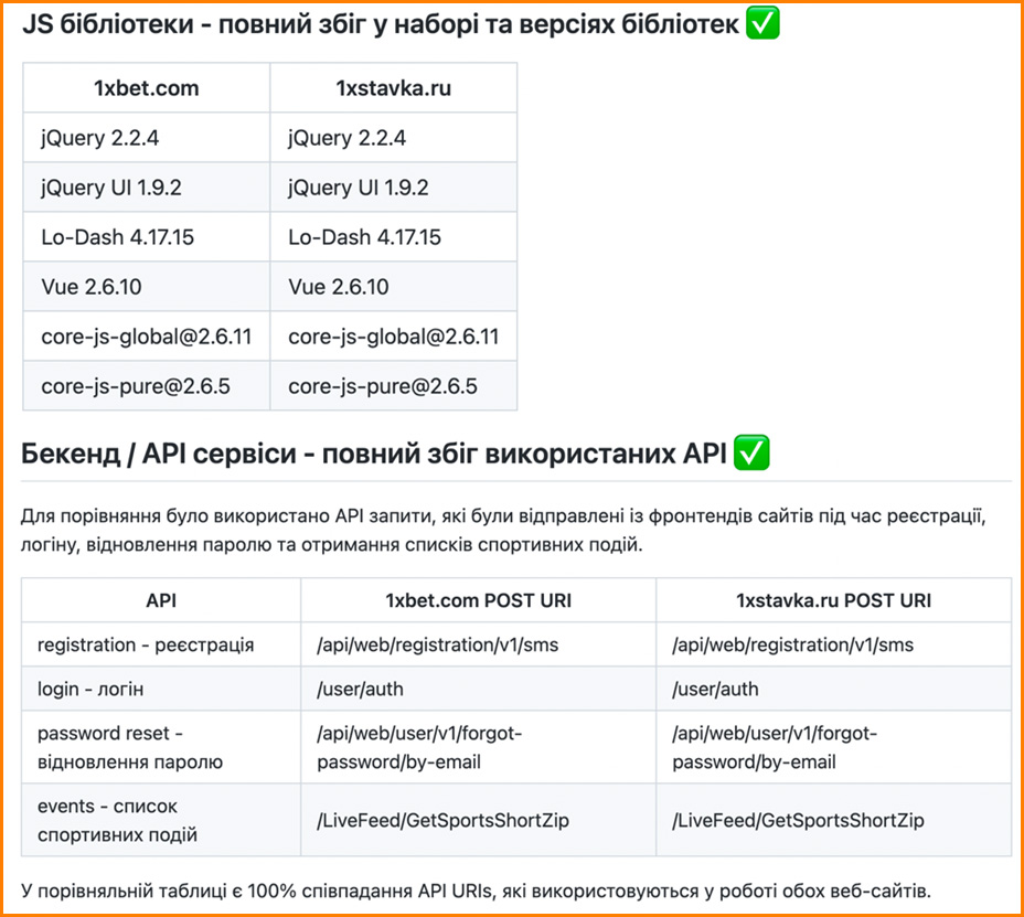 У позові Мін’юсту на цю тему розкривається багато технічних деталей із прізвищами людей, а також наводяться експертизи ДБР про використання 1хBet і «1хСтавка» єдиного програмного забезпечення, кодів тощо.