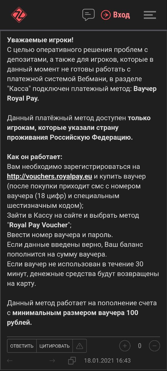 Наприклад, за цим посиланням досі активна пропозиція поповнити гральні рахунки через схему придбання ваучерів платіжної системи ROYAL PAY.