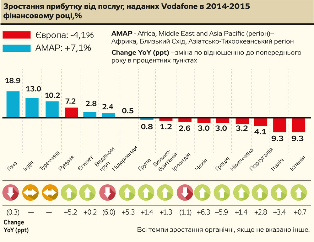 Утім, і в цього гіганта картина загалом не така райдужна. Згідно з річним звітом компанії, вона продовжує бурхливо зростати лише на ринках, які розвиваються, а ось у Європі в неї лише спостерігаються "ознаки стабілізації". За рік доходи Vodafone на європейському континенті знизилися на 2,4%, але в компанії й цьому раді, вважаючи, що покращилася "комерційна реалізація", досягнуто певної "стабільності цін та зростання даних".