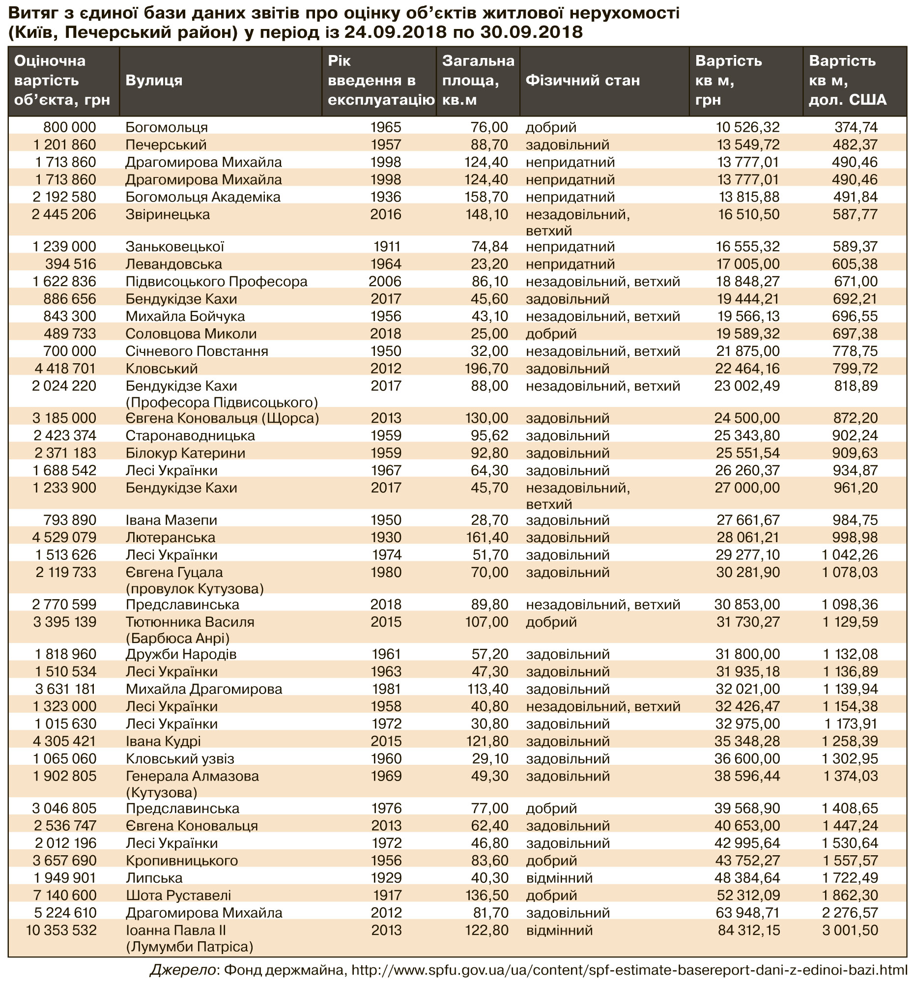 Ми наводимо таблицю, в якій вибрано офіційно опубліковані дані на сайті Фонду держмайна. В останній колонці видно ті вартості квадратного метра, які "диво-Модуль" дозволив зареєструвати в єдиній базі. Ми вибрали ті квартири в багатоповерхових будинках, які розташовані в Києві на Печерську. Читач може дістати величезне задоволення від споглядання цих цін...
