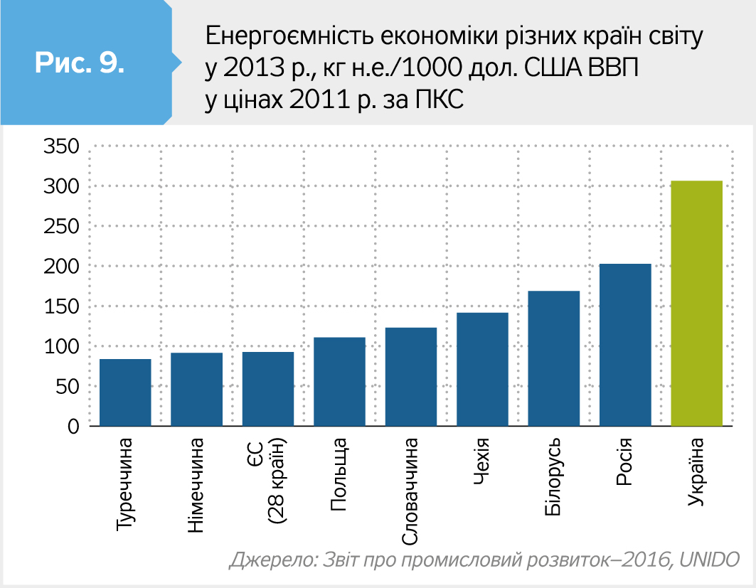Але і тут цей стан треба розглядати як можливість, оскільки різні операційні програми енергоощадності, наприклад утеплення будинків, заміна тепло- чи енергомереж, альтернативна енергетика, встановлення лічильників чи модернізація металургії, запустять відповідні виробничі процеси, збережуть енергію для нових виробництв або експорту. Крім того, енергоощадність вивільнить кошти бюджету, які зараз ідуть на субсидії, пов'язані з енергетикою. У 2015 р. Україна витратила 153 млрд грн на енергетичні субсидії, з яких лише 25 млрд грн було спрямовано на субсидування населення. Ці кошти найдоцільніше спрямувати на стимулювання економічної діяльності, зокрема структурні реформи чи створення інституцій розвитку.