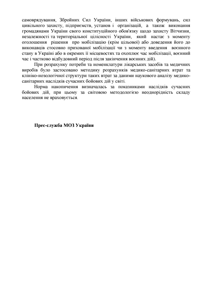 Полезно было бы также понять, каким образом определялась норма препаратов на регионы. Разве можно сравнивать ту же Днепропетровску область, где проживают 3,2 млн. чел. и, например, Тернопольскую - с 1 млн жителей? При этом им одинаково положено по 1 514 бактериологических лабораторий и по 302 тыс единиц, к примеру, той же неформулярной настойки валерианы.