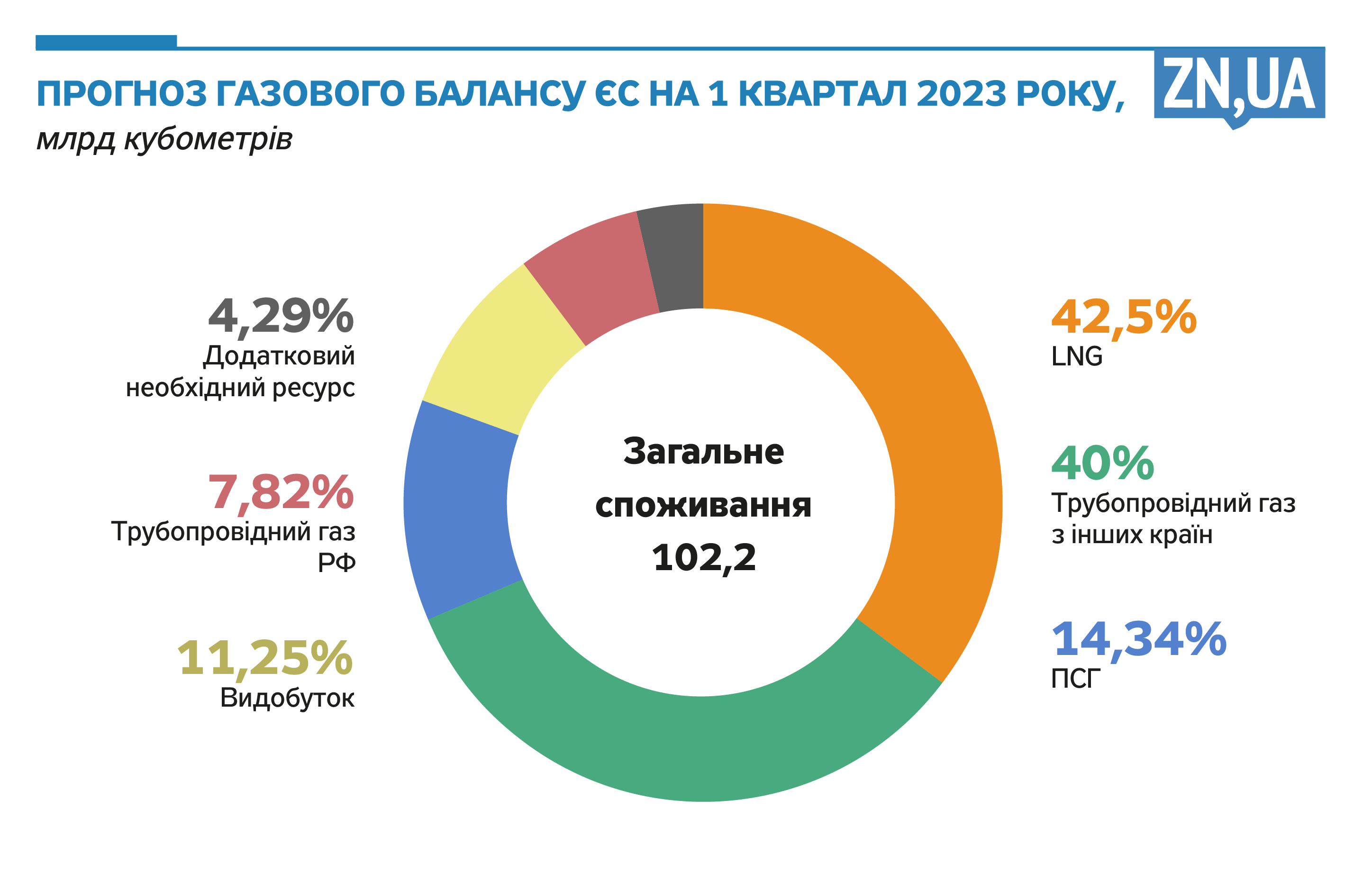 У результаті розрахунків щодо наявності ресурсу в ЄС у першому кварталі 2023 року було визначено, що Євросоюз потребуватиме додатково для власного споживання 4,29 млрд кубометрів газу.