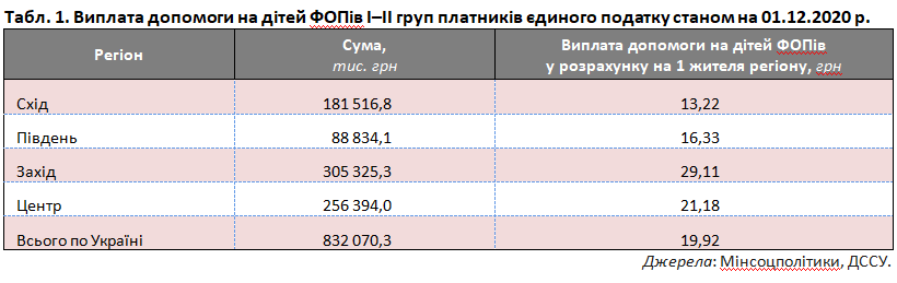 Перш за все йдеться про виплату допомоги на дітей фізичним особам-підприємцям (див. табл. 1), які обрали спрощену систему оподаткування і належать до першої та другої груп платників єдиного податку. Фактично мова про певну компенсацію зниження або втрати доходів відповідної категорії населення.
