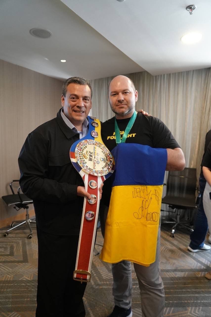 "Є одне натхнення, яке має кожен боксер – це ви. Всі ви – герої людства. Усі країни, що є членами WBC, а також Мексика, де розташована наша штаб квартира – дивляться на вас і плачуть. Ми сприймаємо вас як героїв та приклад того, як бути хоробрими, боротися, не здаватися і завжди прагнути перемоги. Я бачу жертву, яку ви принесли, та труднощі, через які ви пройшли заради своєї країни. Це будуть пам'ятати століттями", - сказав він.