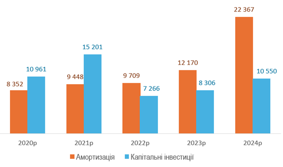 Та чи пішло це на користь «Енергоатому» або комусь ще? Аж ніяк. З рис. 4 видно, що при зростаючій ледь не втричі амортизації сума капітальних вкладень залишилася на рівні 2020 року!