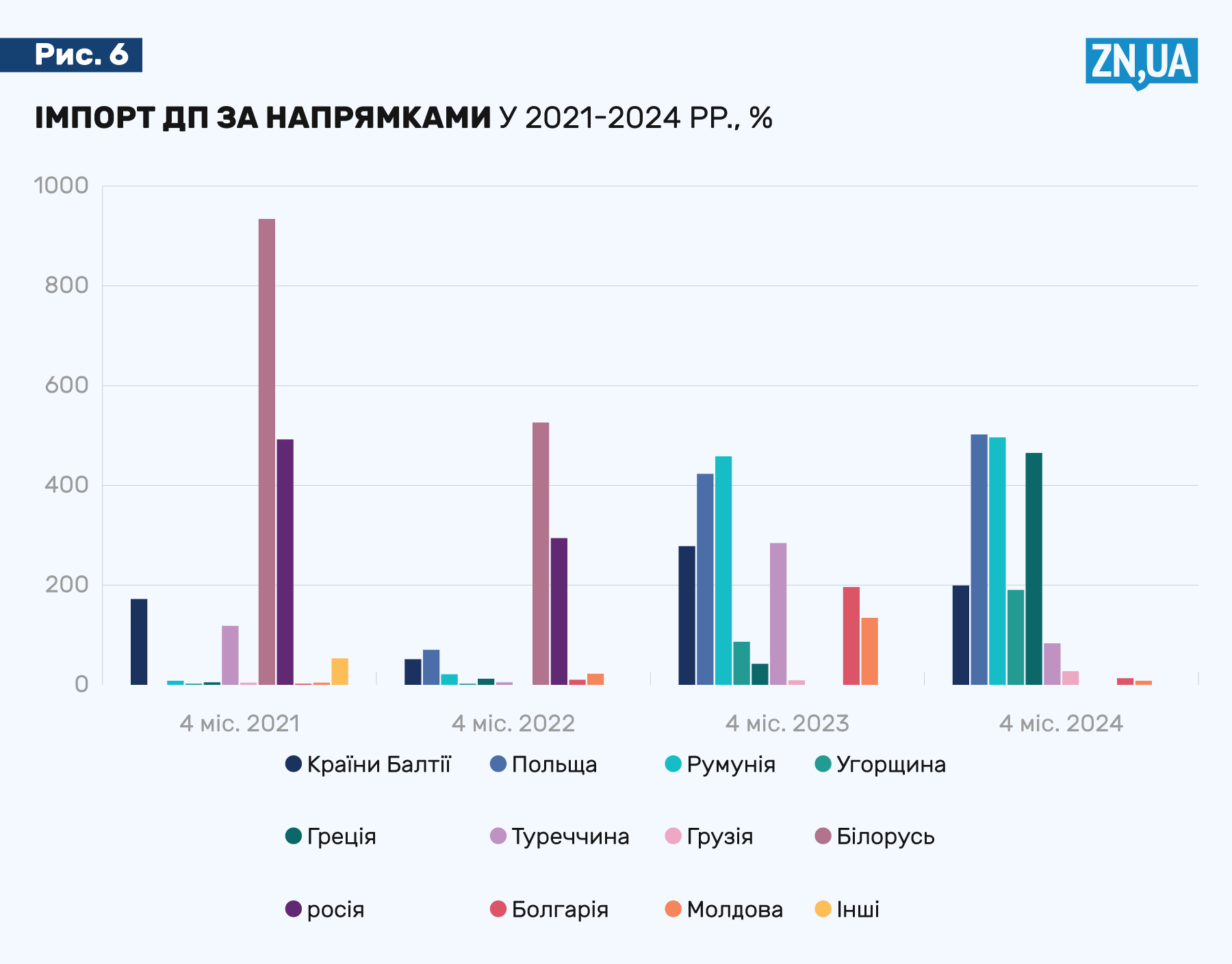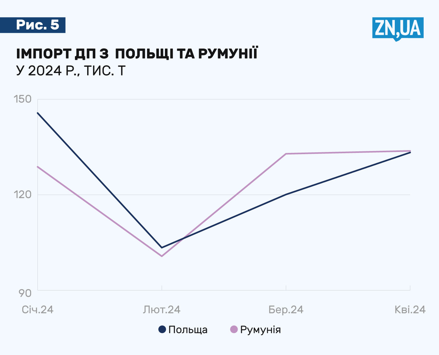 Якщо тоді імпортні обсяги ділили між собою Білорусь і Литва, то зараз основними джерелами постачань є Румунія (91,6 тис. тонн), Польща (84,3 тис.) і Литва (39,8 тис. тонн).