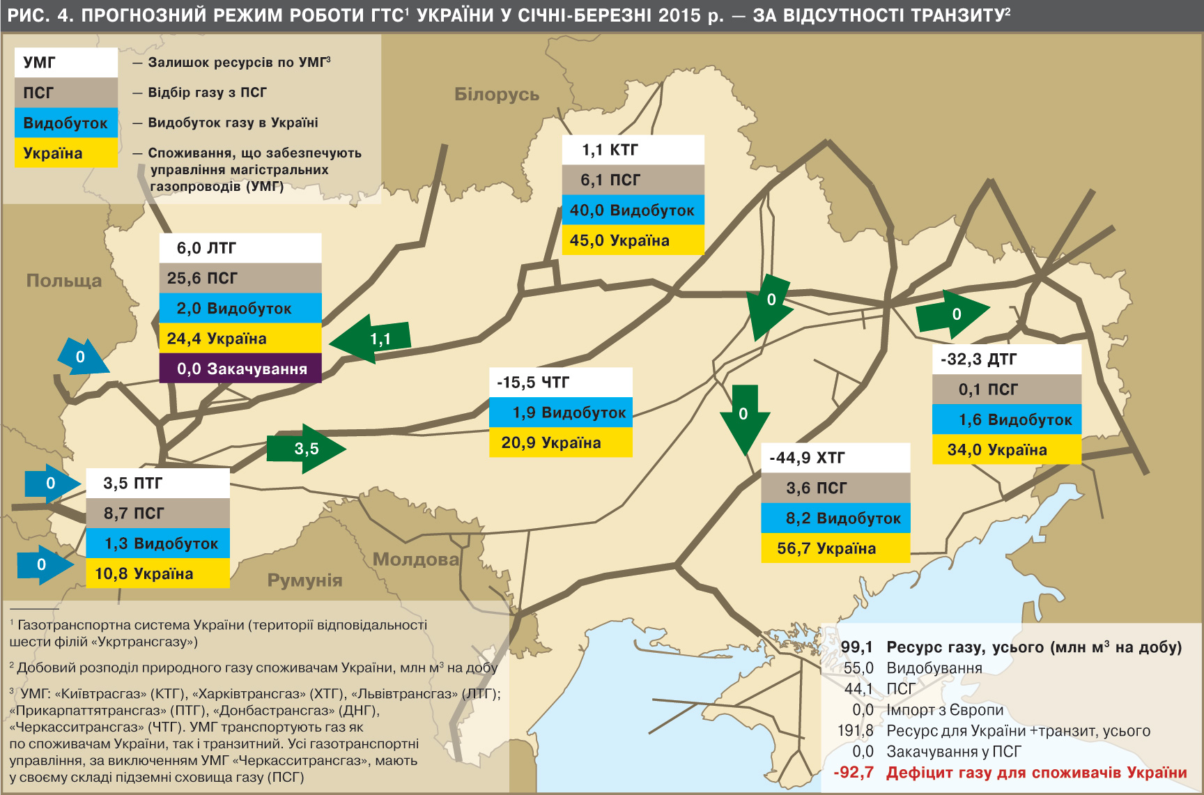- у березні 2015 р. ресурсів для промисловості не буде, дефіцит газу для населення може становити 429 млн кубометрів.