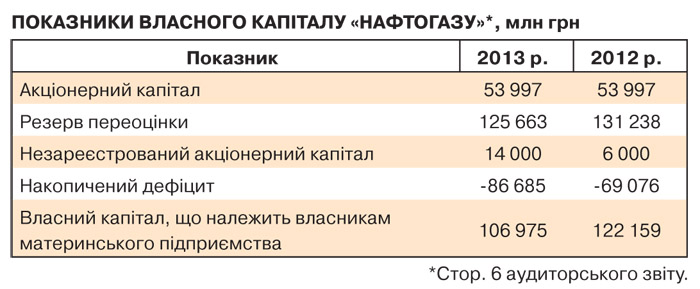 10,95 млрд грн. За вирахуванням підтримки дефіцит 2012-го становить 10,05 млрд грн. В 2013 р. НАК отримала 8,0 млрд у вигляді облігацій, отже, дефіцит досягнув 13,56 млрд грн.