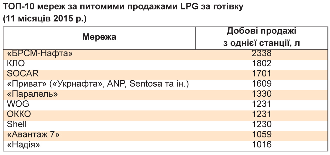 Відмітною ознакою ринку у 2015 р. стало переформатування конкуренції на ньому. Ще три роки тому більшість великих мереж якщо й ставили АЗГП на своїх станціях, то воліли віддати цю тему на аутсорсинг спеціалізованим газовим компаніям, що мають досвід та інфраструктуру. Тоді ринком правили такі оператори, як "Надія", "Автотранс", "СГ" (нині - "Пропан-Трейд"), "Газовик", "ЛПГ" і деякі інші. Коли в 2008–2010 рр. споживання почало подавати виразні сигнали зростання, великі мережевики вирішили перевести АГЗП у свою власність, залишивши на підряді лише постачання, а невдовзі багато хто з них перейшов на власне забезпечення ресурсом.