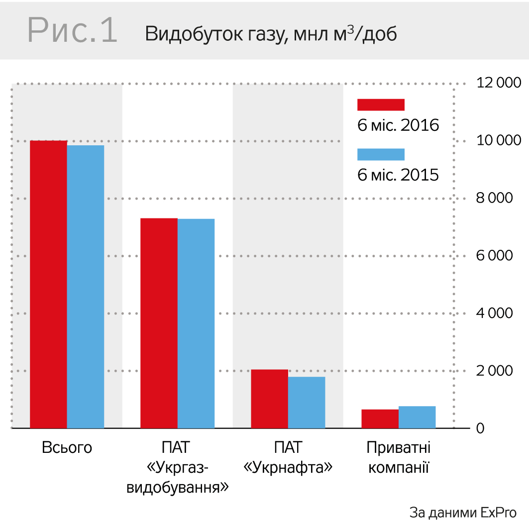 У першому півріччі 2016-го в Україні видобуто 10 млрд кубометрів газу. Це хороший показник: порівняно з аналогічним періодом 2015 р. видобуток зріс на 160 млн кубометрів, або на 1,7%. Позитивні результати забезпечили приватні видобувні компанії, точніше, дві з них.