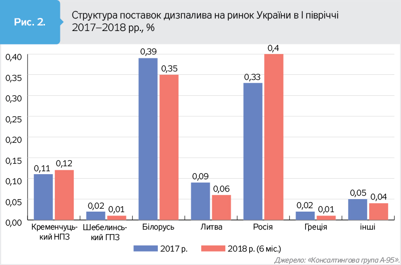 У першому півріччі 2018-го українські нафтопереробні заводи не змогли зберегти темпу нарощування частки ринку, залишившись на колишніх позиціях. Головна проблема - продажі бензину. Технологічна схема переробки, закладена в часи СРСР, дає підвищений вихід цього продукту, тоді як сучасний ринок дедалі більше потребує дизельного палива та скрапленого газу.