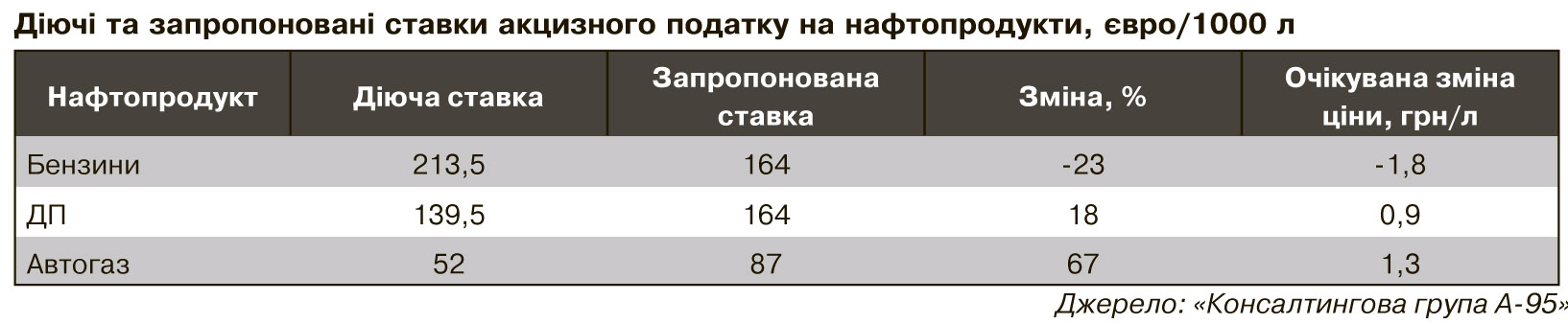 Цікавою ініціативою стала пропозиція "Укртатнафти" змінити ставки акцизних зборів на моторні палива з метою підвищити привабливість бензину. Його головним ворогом є скраплений газ, на який за останні чотири роки перейшло понад 30% споживачів бензину. Причина - ціна газомоторного палива вдвічі менша.