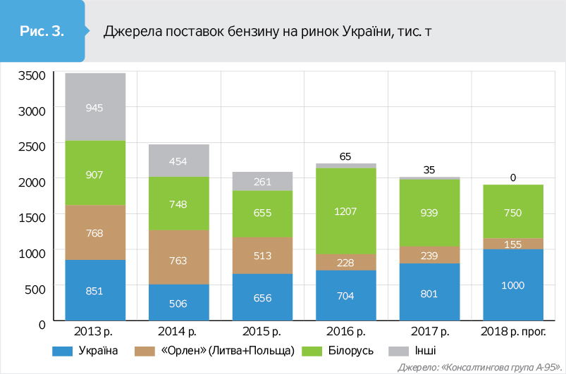 Описані зміни в поставках упродовж останніх двох років привели до побудови більш стійкої моделі постачання ринку. Якщо раніше ринок був орієнтований виключно на Білорусь, то у 2017-му і 2018 р. конструкція стала більш збалансованою та стійкою. Крім трьох ключових джерел поставок - Білорусі, Росії та українських НПЗ, як допоміжний залишається імпорт із Литви та Польщі (польський концерн "Орлен"), а також морем. Поляки відіграли важливу роль у наповненні ринку восени, одночасно утримавши свою частку ринку. Крім того, вони заклали фундамент на 2018 р., тому що ряд мереж перекинули з Білорусі на "Орлен" частину своїх закупівель, вважаючи їх надійнішими.