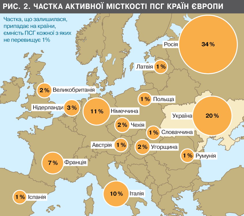 Як не бажає втратити й порівняно дешевий доступ до української ГТС, включаючи ПСГ. 12 українських "підземок" (не беручи до уваги ПСГ "Чорноморнафтогазу" в Криму) загальною продуктивною потужністю близько 31 млрд кубометрів - це практично третина європейських потужностей для сезонного зберігання газу (див. рис. 2). Найбільш потужних і близьких до європокупців російського газу. Тому "Газпром" дуже переймається тим, щоб, крім нього, ніхто не зберігав газу у ПСГ "Укртрансгазу", розповідаючи про несанкціонований відбір та "випаровування" газу з наших "підземок".