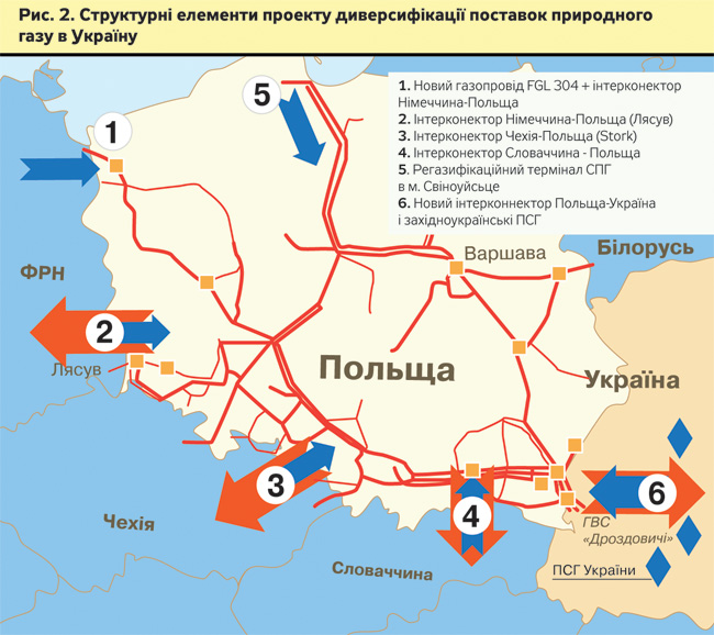 1. Будівництво нового газопроводу та розширення діючих інтерконекторів Німеччина-Польща для одержання вільного доступу до газових хабів Північно-Західної Європи та забезпечення фізичної подачі природного газу як із Західної Європи на схід, так і в зворотному напрямку.