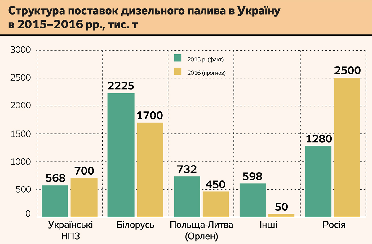 Саме на стільки будуть змушені знизитися всі постачальники без винятку. В іншому разі їм просто нічого не залишиться, як скорочувати свою частку ринку. І це ще не всі новини. Слід врахувати, що, крім трубопровідних поставок, з Росії будуть і залізничні. Прогнозувати їх обсяг важко, але влітку 2015 р. вони сягали 170 тис. т на місяць. Таким чином, за вдалого збігу обставин (читай - при додатковому зниженні ціни на 5–10 дол. на тонні) частка російських поставок може перевищити 50% ринку.