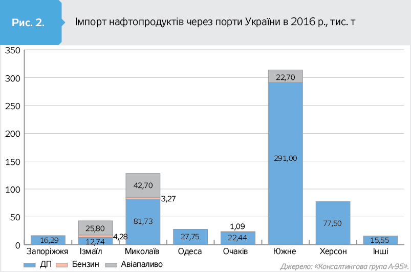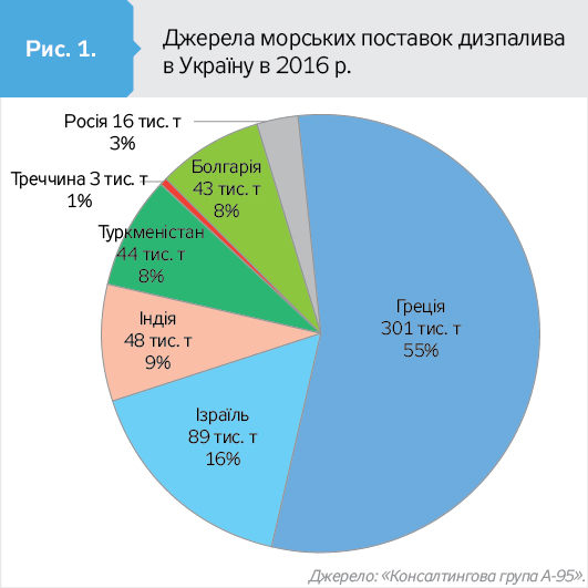 Усього в 2015 р. було поставлено майже 800 тис. т ДП і бензинів з моря - рекордний результат за доступну для огляду історію. Однак у 2016 р. обсяг знизився до 550 тис. т палив, або на 30% (див. рис. 1).