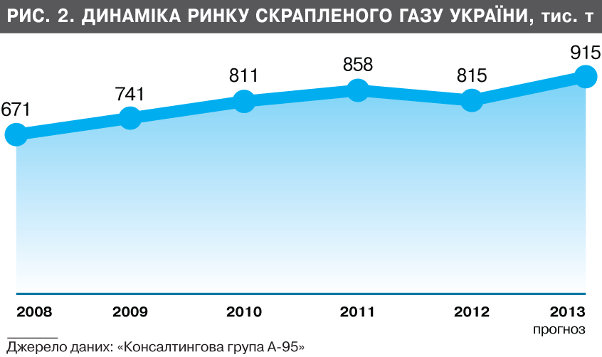 І хоча конкуренція на ринку автогазу задає нові темпи розвитку ринку, у комунально-побутовому секторі та нафтохімічній галузі справи йдуть інакше. За оцінкою експертів, обсяг балонного ринку в Україні відносно стабільний упродовж останніх років і щороку становить близько 85–100 тис. т, а ступінь розвитку ринку скрапленого газу більшості регіонів характеризується як дуже низький.