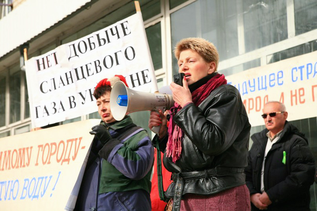 Незважаючи на те, що ГРП уже давно проводиться в Україні, тільки зараз з подачі захисників навколишнього середовища і різного роду громадських організацій питання проведення гідророзриву пласта набуло небувалої гостроти. Після проведення конкурсів з укладання угод про розподіл продукції (УРП), переможцями яких стали компанії Shell на Юзівській ділянці і Chevron на Олеській ділянці, в Україні почали розкручувати маховик боротьби з міжнародними нафтогазовими компаніями, які нібито становлять потенційну загрозу навколишньому середовищу. Особливо активно включилася в боротьбу із "сланцевою загрозою" громадська організація "Український вибір" Віктора Медведчука, яка під виглядом захисту інтересів місцевого населення блокувала не лише проведення ГРП, а й будь-яку роботу, спрямовану на розвідку і видобуток вуглеводнів. Також слід зазначити й позицію всеукраїнського об'єднання "Свобода", яка принесла чимало горя українським нафтогазовидобувним компаніям. Не секрет, що найбільше в блокуванні проведення ГРП, та й видобутку газу в цілому в Україні зацікавлений російський "Газпром", для якого "сланцева революція" стала справжнім кошмаром. Треба зазначити, що через істерію навколо ГРП в Україні таки вдалося створити негативне сприйняття широкою громадськістю технологій гідророзриву.