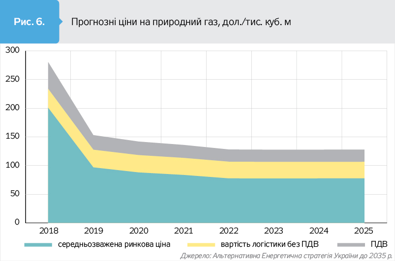 Автори альтернативної стратегії взяли на себе сміливість спрогнозувати,якою може бути динаміка цін на природний газ з урахуванням маси факторів, якими не хочу вас навантажувати. Скажу тільки, що динаміка цін може нас приємно здивувати (зниження ціни до 153 дол./тисячу кубометрів уже в 2019–2020 р., якщо…).