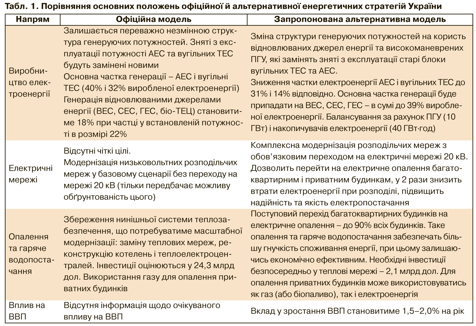 (див. табл. 1). Це підвищує економічну ефективність енергосектора та дасть змогу щороку заощаджувати до 11 млрд дол. (або 38%) порівняно з енергосектором на базі офіційної енергостратегії.