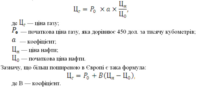 Наприклад, при закупівлі газу за контрактом 2009 р. без знижки у разі реалізації сценарію мінімальних цін на нафту аж до початку 2017 р. ціни за зазначеним контрактом будуть нижчими від середньоєвропейських.