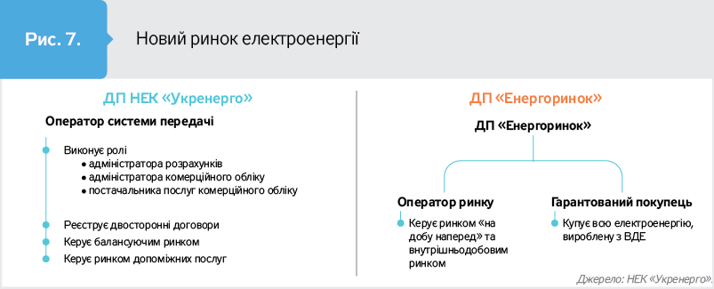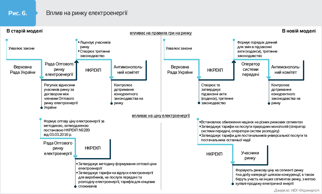 Показовим є й те, хто і як впливає на правила гри та ціни на ринку електроенергії у старій і новій версіях (див. рис. 6).