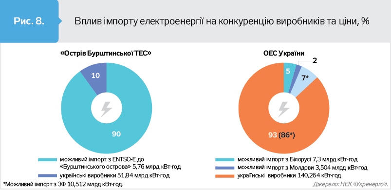 Не обтяжений проблемами енергоринку читач справедливо запитає: "Якщо в країні й так надлишок електроенергії, навіщо її ще й імпортувати?". Цілком логічне запитання, на яке є не менш логічна відповідь. Якщо коротко: для балансу, насамперед цінового. І для практичної, а не лише віртуальної конкуренції виробників в Україні (див. рис. 8). Оскільки в Європі вартість електроенергії найчастіше нижча, ніж тієї-таки ДТЕКівської теплової.