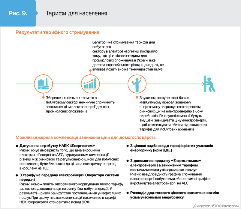 Отже, за наявності боргів за електроенергію понад 33 млрд грн, утворених насамперед теплоенергокомпаніями та водоканалами, за існування перехресного субсидування, за відсутності реальної конкуренції, за наявності спецобов'язків (ПСО) для найбільших державних генеруючих компаній нову модель ринку електроенергії буде запущено з 1 липня. Впроваджуючи ПСО і вибиваючи тим самим із конкурентного ринку 90% виробленої електроенергії "Енергоатома" і 20% "Укргідроенерго", уряд сподівається позбавити співгромадян (побутових споживачів) цінового шоку, обіцяючи, що тарифи спочатку зростуть не більш як у 1,5 разу. Але при цьому Кабмін замовчує, що все цінове навантаження автоматично, як і раніше, буде перенесено на промислових енергоспоживачів усіх категорій. Для них ціна ризикує зрости на 40–60%. На практиці це означає тотальне подорожчання майже всієї виробленої в Україні продукції і черговий виток інфляції. Плюс неконкурентоспроможність енерговитратних товарів України на зовнішніх ринках.