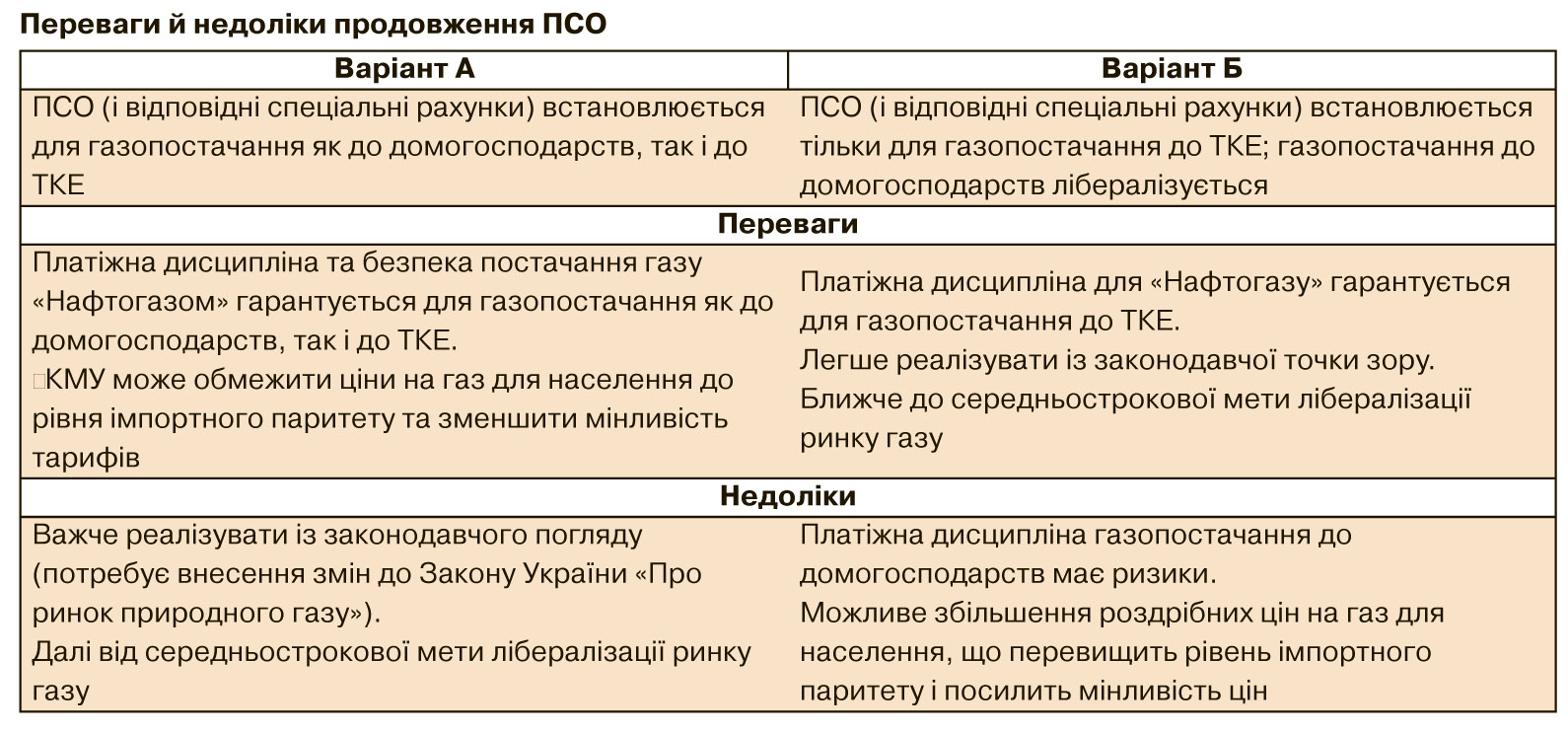 У таблиці наведено основні переваги й недоліки можливих варіантів для продовження ПСО.