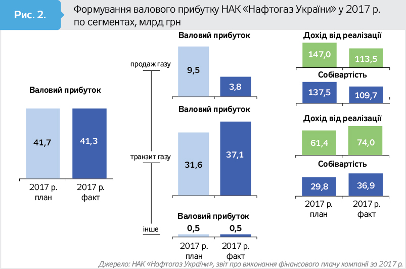 Що стосується реалізації газу для побутових потреб населення (ПСО) у 2016–2017 рр., то згідно з консолідованою фінансовою звітністю, у 2016 р. від цієї діяльності "Нафтогаз" отримав 12,0 млрд грн валового прибутку, у 2017 р. - уже 26,5 млрд (див. рис. 2, 3).