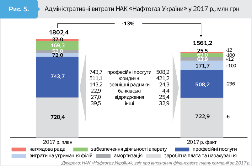 Таким чином, у першому кварталі 2018-го "Нафтогаз України" поніс понад 2,6 млрд грн витрат, які не пов'язані з виробництвом і реалізацією продукції, що, в свою чергу, призвело до зменшення фінансового результату (чистого прибутку).