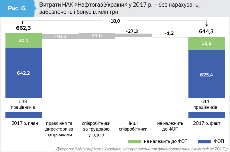 Отже, отримуючи у 2017 р. від споживачів ПСО оплату за газ на рівні 92%, сам "Нафтогаз" продовжував накопичувати борги перед УГВ, відволікаючи кошти, що належать газовидобувному підприємству, на фінансування інших витрат, не передбачених фінансовим планом, зокрема на дострокове погашення кредитної заборгованості перед Газпромбанком (22,28 млрд грн).