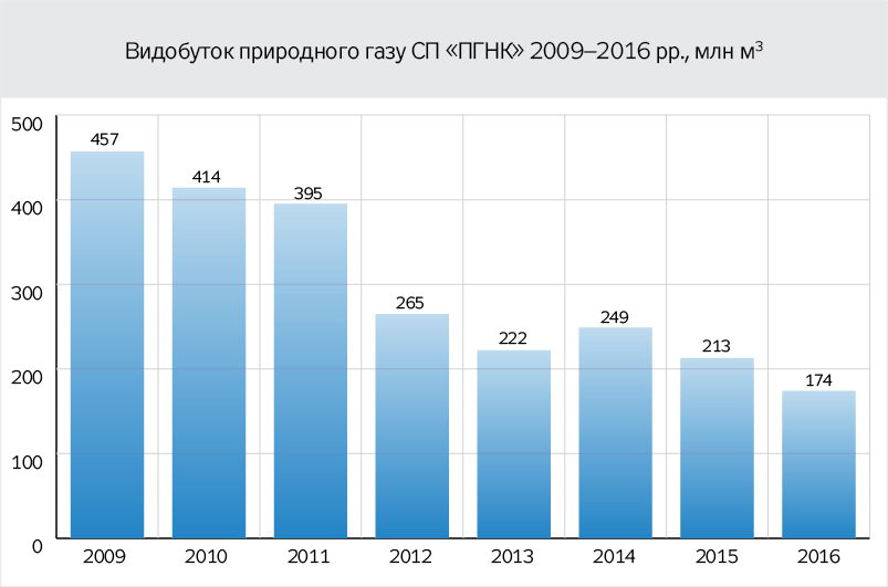 Колись найуспішніший проект з видобування нафти й газу в Україні, ПГНК, поступово поступався позиціями. Нині компанія перебуває на шостому місці серед приватних видобувних компаній за обсягами видобутку газу, і в останні роки динаміка видобутку вуглеводнів була негативною.