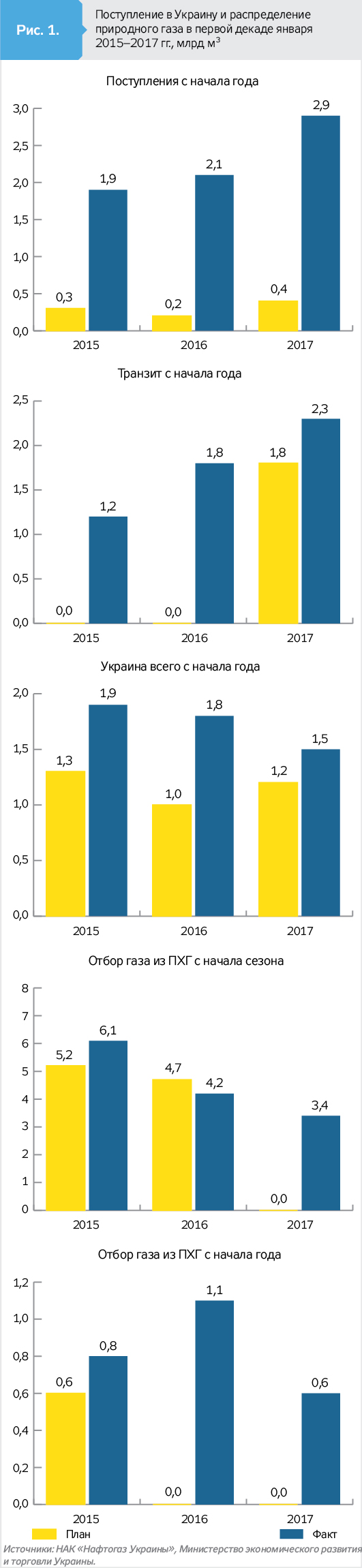 У першій декаді січня, повідомили в "Нафтогазі" та "Укртрансгазі", українські споживачі використали 1,609 млрд кубометрів газу, у т.ч. 0,6 млрд видобутого в Україні, стільки ж узято з ПСГ і 0,4 млрд кубометрів імпортовано з Європи.