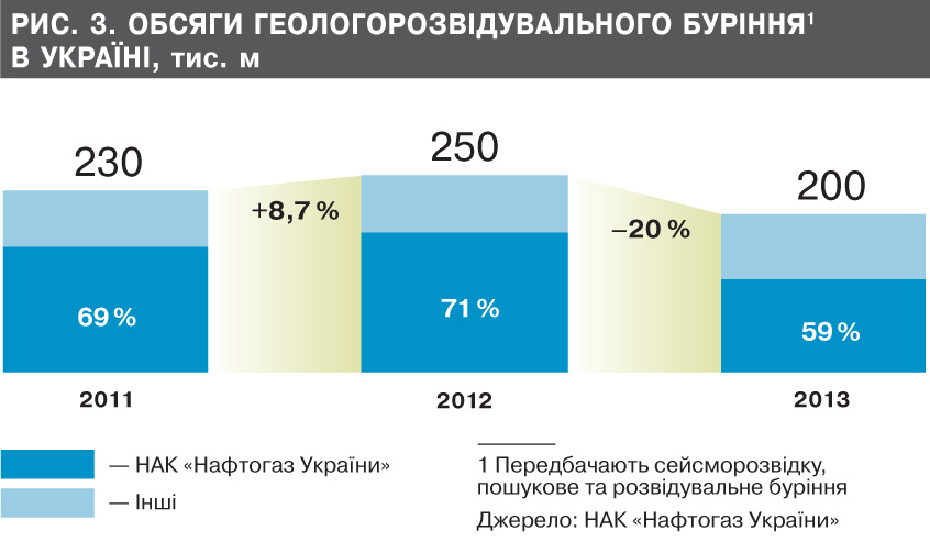 У результаті, попри те, що коефіцієнт успішності пошуково-розвідувального буріння в Україні (0,5–0,6) істотно перевищує загальносвітові показники (0,2–0,3), що значною мірою пояснюється накопиченим досвідом проведення ГРР і зумовлене знанням потенціалу регіонів з уже розвіданими запасами, щорічний приріст запасів вуглеводнів ледь компенсує обсяги їх добування з надр (див.рис. 2,3).