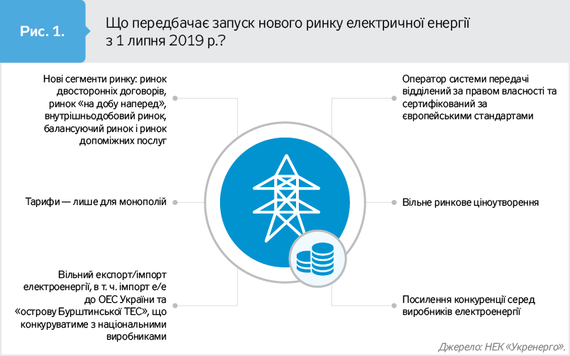 Реформа енергоринку розпочалася не сьогодні і не вчора. Ще у 2017 р. було ухвалено досить суперечливий Закон "Про ринок електричної енергії", який передбачав фактично повний відхід від державного регулювання (насамперед цін) для непобутових споживачів і певну лібералізацію ринку для побутових споживачів (домогосподарств). Нам казали, що вільний вибір постачальників, вільне ціноутворення стимулюватимуть конкуренцію. А конкуренція з боку постачальників за споживача сприятиме зниженню цін і підвищенню якості як електроенергії, так і послуг з її постачання (див. рис. 1).