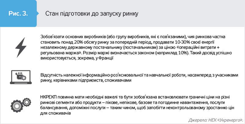 По-друге, Кабінет міністрів досі не затвердив нормативних актів, без яких запуск конкурентного ринку принципово неможливий. Відсутній документ, що регулюватиме продаж електроенергії на аукціонах державними "Енергоатомом", "Укргідроенерго" та "Центренерго". А це, на секунду, близько двох третин загальноукраїнської генерації.