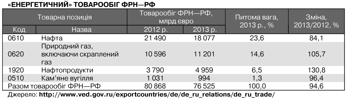 У чому причини феномену того, що Німеччина фактично грає на користь Кремля? Одна з фундаментальних причин - російські енергоресурси. Німеччина є найбільшим імпортером російського газу, ввозить значні обсяги нафти та нафтопродуктів (див. табл.).