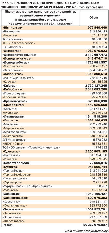 2014 р. обл- і міськгази загалом доставили розподільними мережами 36,27 млрд кубометрів газу. І не тільки населенню. І не тільки доставили. Значну частину цього обсягу вони ж і продали.