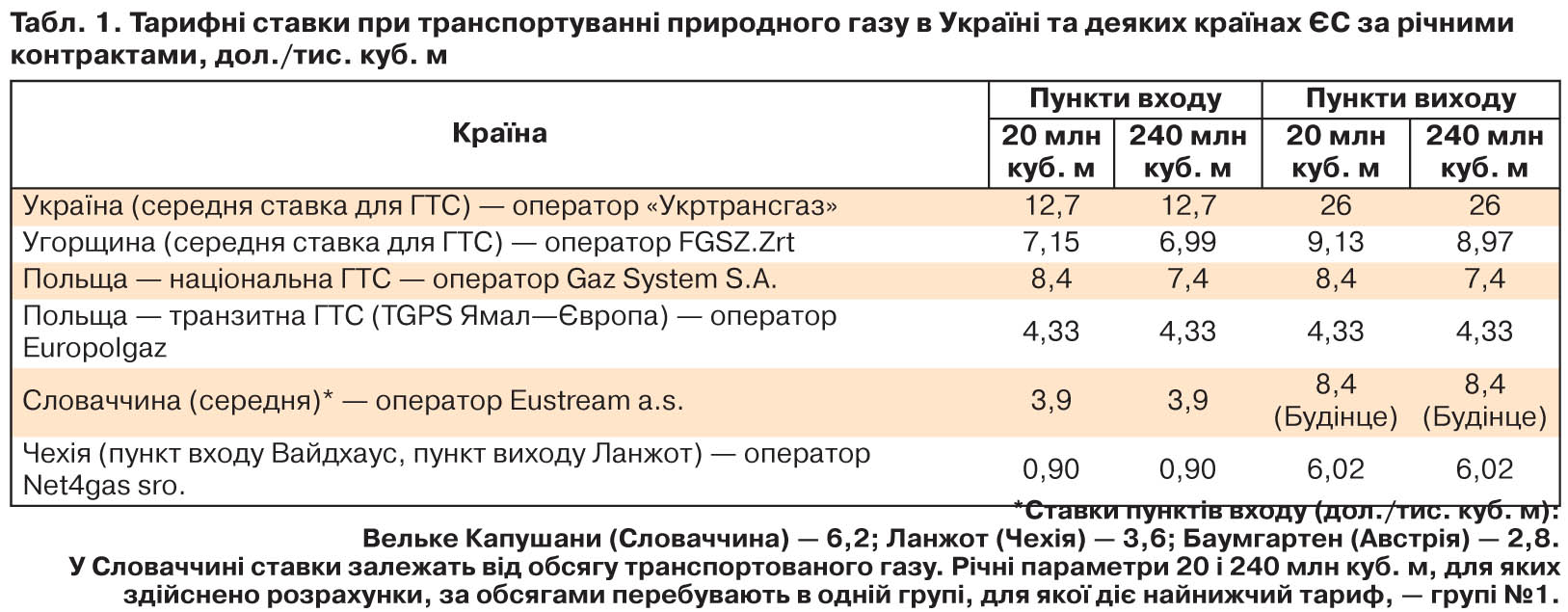 1. Фактичні ставки на транспортування природного газу територіями перелічених східноєвропейських держав значно нижчі, ніж в Україні.