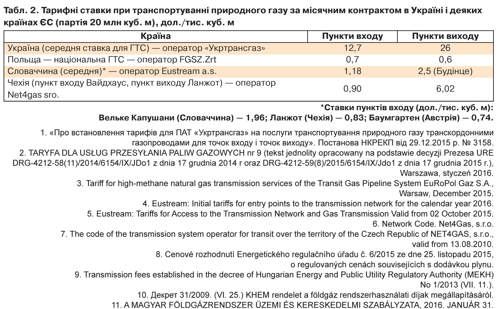 2. Просте зіставлення величини ставок в Україні та європейських країнах неможливе й некоректне. У ЄС тарифи прив'язані до формул, які в різних країнах відрізняються одна від одної. Значення ставки, яке береться без формули, не дає можливості оцінити навіть порядок вартості транспортування. У країнах Євросоюзу тарифи номіновано в грошових одиницях за кВт∙год./година або за МВт∙год./доба на весь контрактний період. Наприклад, для річного контракту при розрахунку суми оплати за транспортування повної партії добову ставку не слід додатково множити на 365 або 366 (діб).
